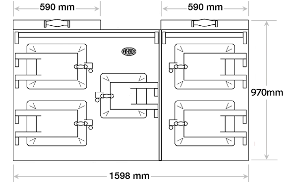 Able to contend with big families, big appetites and even bigger entertaining, the two-piece Everhot 160i features four full ovens with two top grills and an easy-to-adjust control panel neatly hidden behind a middle fifth door. Never fear Christmas dinner preparation again. Sitting above the ovens, you will find our traditional double simmer and hot plates either side of a state-of -the-art, two-zone induction hob. All in all, capable of managing up to ten pots or pans on the go at once. Each of the ovens, hot plates and induction zones are temperature adjustable, reaching up to 250 degrees in the top ovens and 180 degrees in the lower ovens. Giving you the capability to slow cook, simmer, bake and roast at the same time. The Everhot 160i is an opulent, attention grabbing, centrepiece that brings warmth and style to your kitchen.